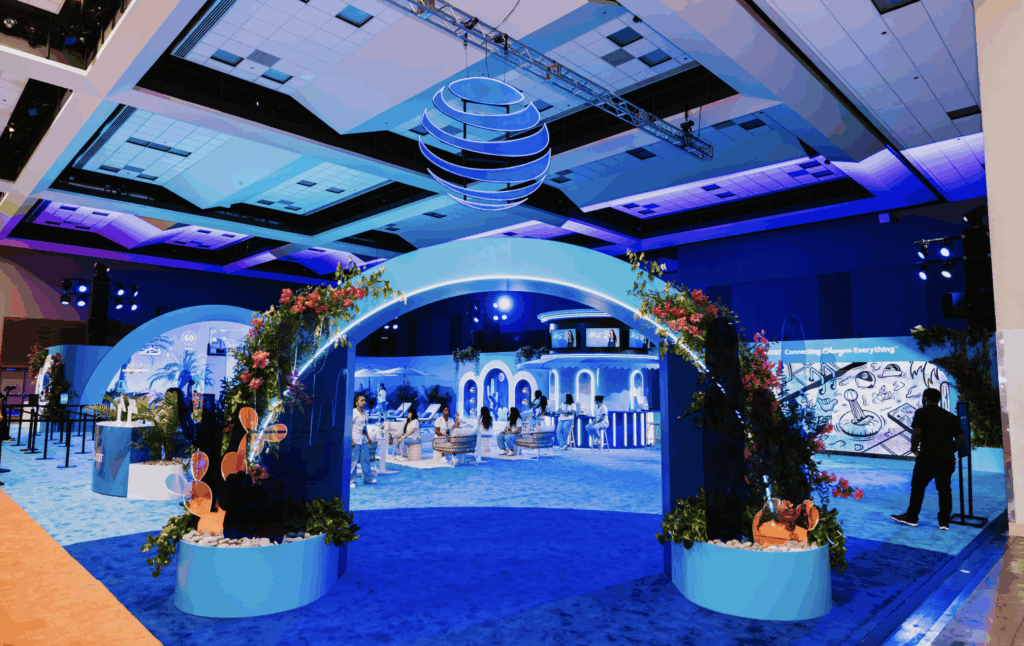 Schoeneberger said, pointing to the AT&T Fan Zone that Bluewater Technologies produced at WNBA Live as an example of their relationship. The installation—which came to life in Phoenix in July 2024—was immersive for its 28-by-13-foot LED wall and 24-by-30-foot LED floor combo that transported guests onto a water-themed basketball court. (Branded courtside lounge chairs made for a nice touch.)